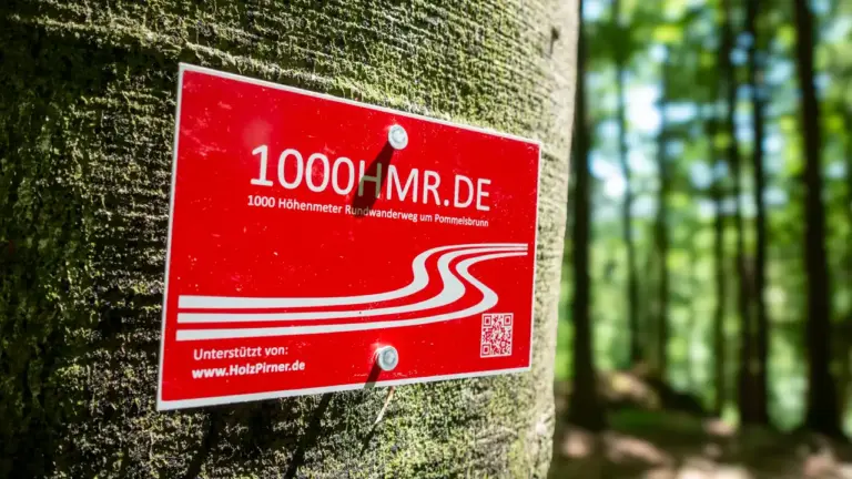 Der Weg ist im Allgemeinen aber sehr gut ausgeschildert, der Dank gilt dabei den Begründern von 1000hmr.de. Ich bin den Weg entgegen der Empfehlung gegen den Uhrzeigersinn gelaufen. Dennoch hatte ich kaum Probleme in der Orientierung. Nur an zwei Stellen bin ich nicht rechtzeitig abgebogen. Aber alleine schon das Fehlen der roten Schilder war Hinweis genug dass ich hier wohl falsch bin. Beim nächsten mal werde ich die Tour mit Freunden aber dann mit dem Uhrzeigersinn angehen. So ist sie ja von den Weg-Erfindern angedacht und ausgeschildert worden.