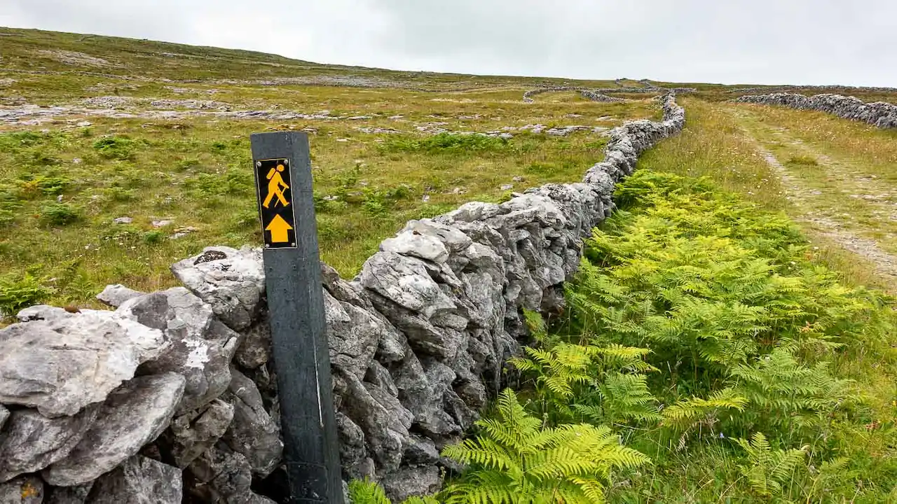 Der Burren-Way ist mit dem in Irland üblichen gelben „Walking Man“-Symbol und Richtungspfeilen gut markiert.