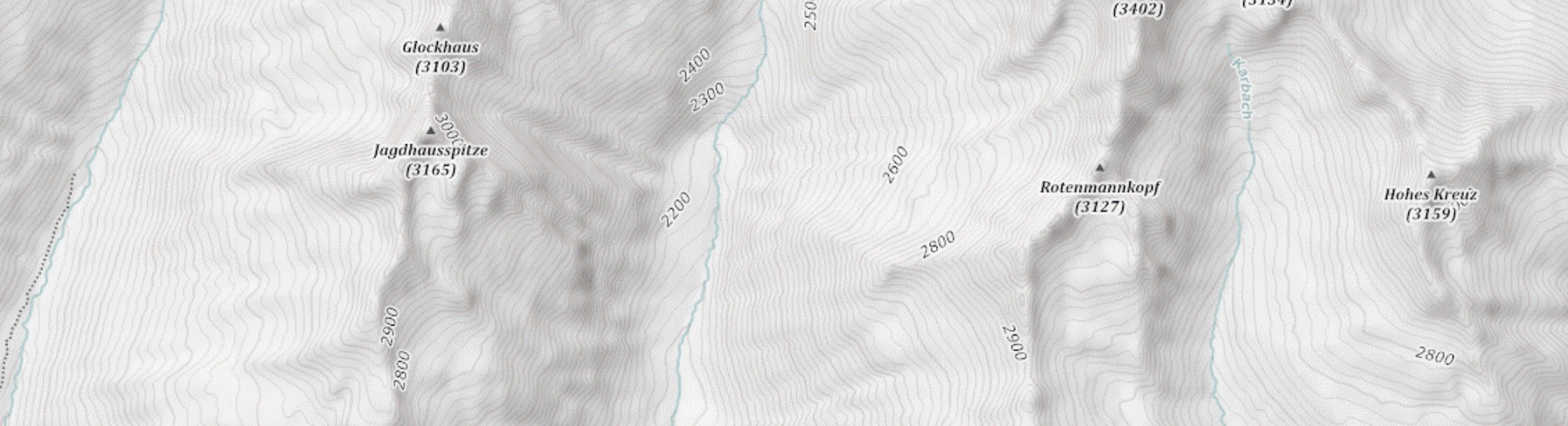 Ohne Frage ist die OpenTopoMap mit die beste Karte wenn es um die Abbildung der reinen Topographie geht. Höhenlinien, Gipfel und Sättel, Quellen, Gewässer und die Vegetation – alles so gut abgebildet wie es die OSM-Daten nur hergeben.