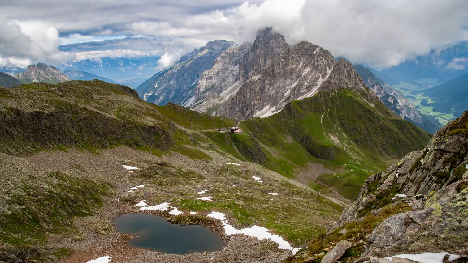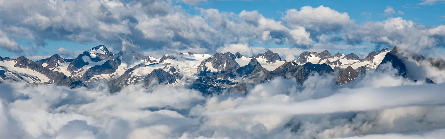 Heute reißt es kurz nach dem Peiljoch (2.676m) auf. Gerade zur rechten Zeit, denn im Süden liegen die Gletscher zum Greifen nah, nach Norden blickt man ins weite Rund der Staubaier Alpen.