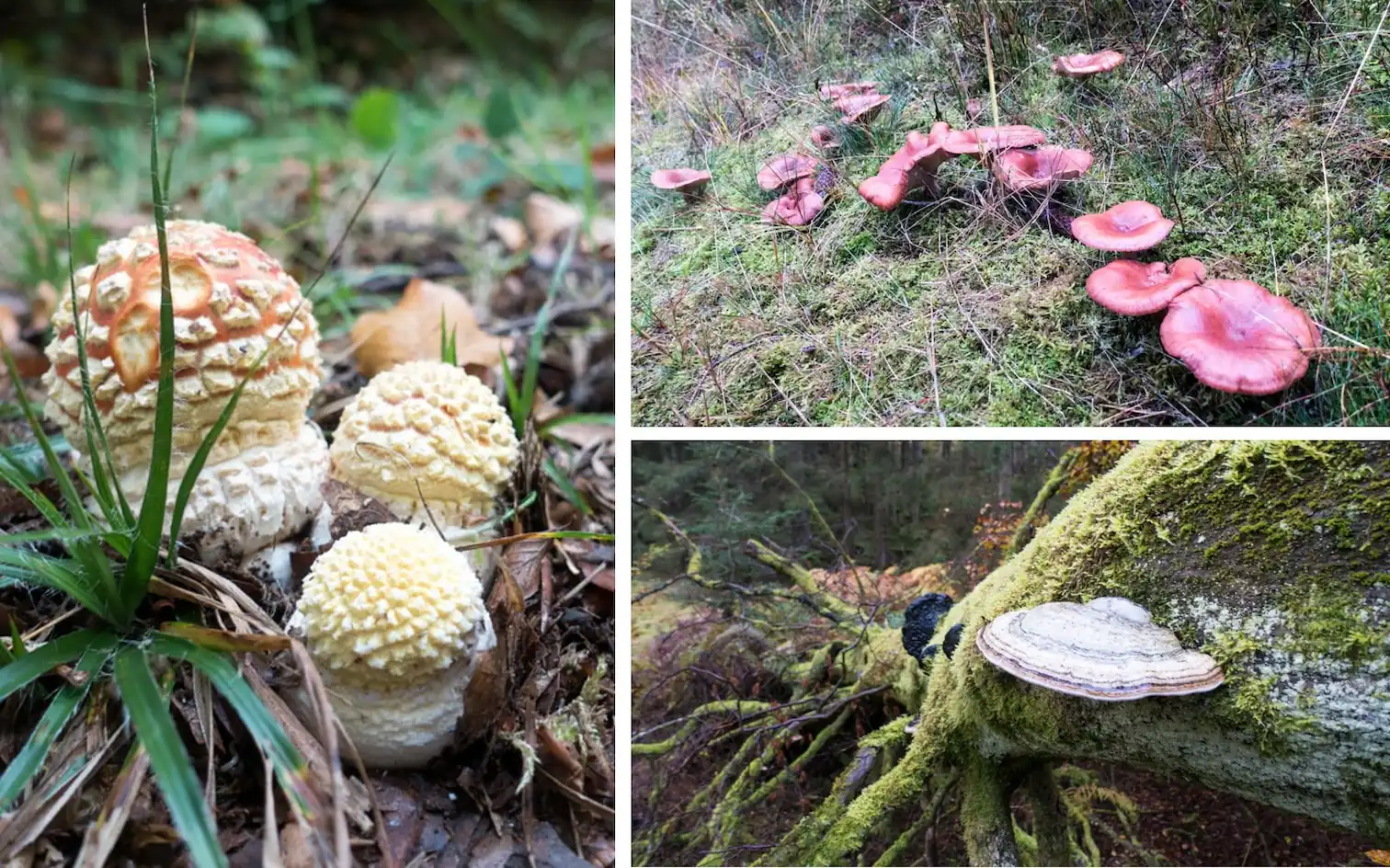 Neben den unterschiedlichen Weg- und Waldformen fällt noch etwas auf: Pilze. Überall Pilze. Klar, es ist ja auch Herbst. Ich kann mich aber nicht erinnern dass ich jemals so viele Pilze an allen möglichen Stellen gesehen hätte. Wer sich mit Pilzen auskennt könnte sich wahrscheinlich die ganze Tour über nur von Pilzen ernähren.