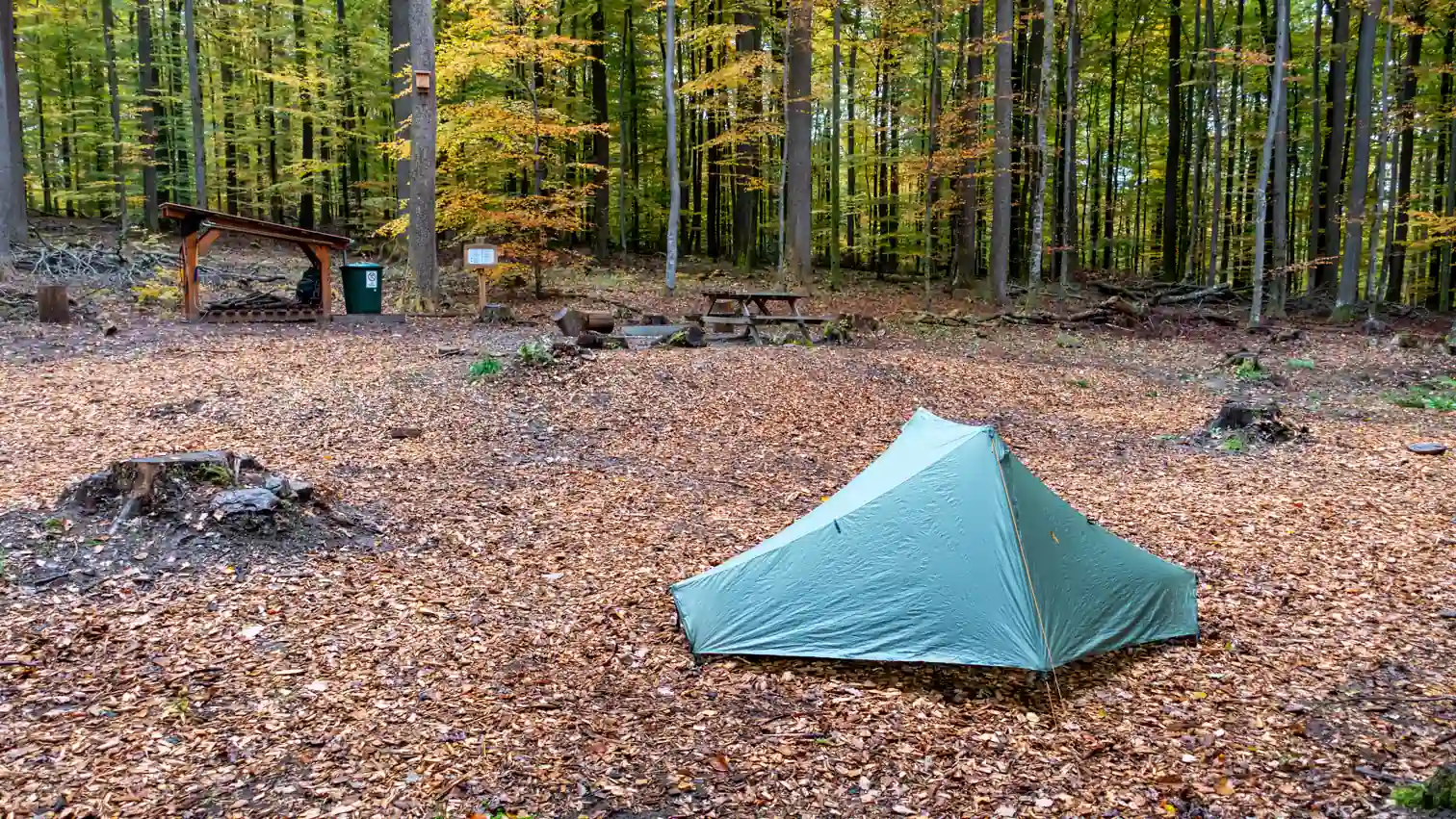 Es war eine aufregende Nacht. Immer wieder faszinierend nachts dem Wald zu lauschen. Überall ein rascheln und wühlen, Tierlaute hier und da, ein wildes Vogelkonzert am frühen Morgen. Und: „Wurfgeschosse“. Im Herbst fallen Eicheln eben von den Bäumen ab. Ich bin froh mein leichtes Tarptent Notch mitgenommen zu haben und nicht einfach unter freien Himmel zu übernachten.